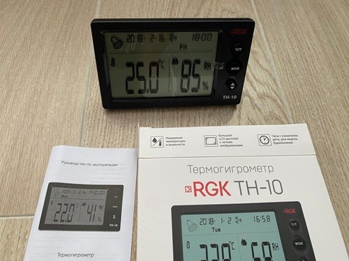 Термогигрометр RGK TH-10 — простой, но очень полезный прибор для дома, офиса или склада. Показывает температуру и влажность точно и в реальном времени — цифры обновляются быстро, шкала на экране крупная, всё легко читается даже издалека.